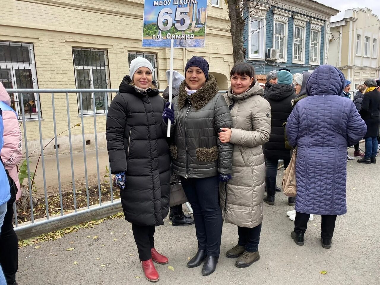 7 ноября в Параде Памяти приняли участие 106 расчетов – это более 8 тысяч человек. Еще более 10 тысяч человек прошли по площади в колонне представителей предприятий, образовательных учреждений, городов и районов Самарской области.На фото делегация МБОУ Школы 65 г.о.Самара