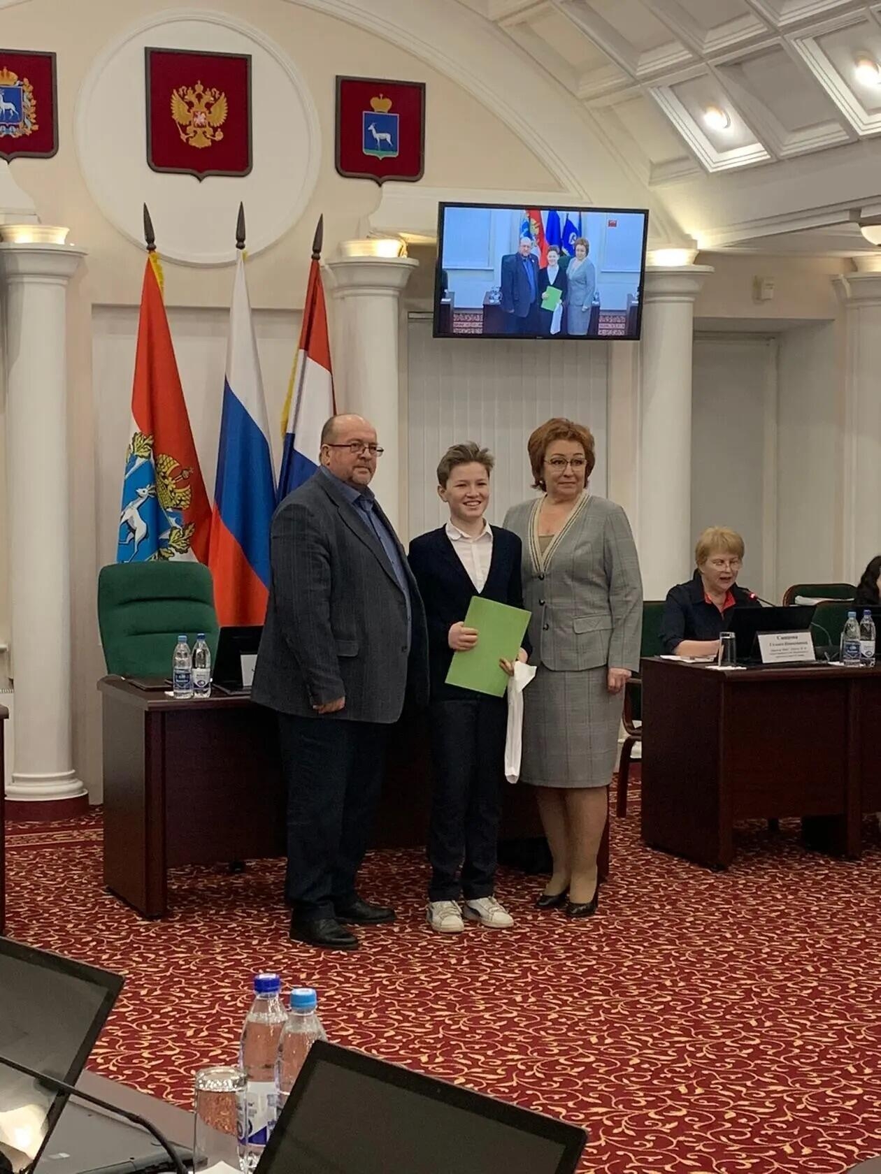 Сегодня, в Государственной Думе, был награжден ученик 7 "Д" класса Крипулевич Иван за 3 место в IX открытых городских патриотических чтениях имени маршала А.М.Василевского «Герои Отечества».